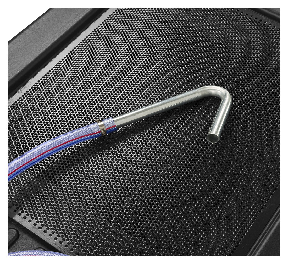 Oljeuppsamlaren levereras med handtag och hjul – så den är lätt att flytta runt.